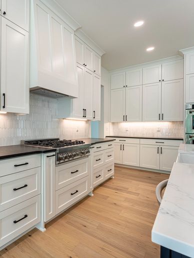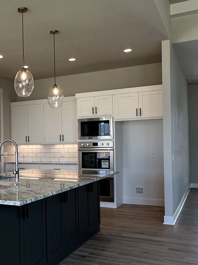 These cabinets have different heights, upper cabinets are 36" height and tall cabinets are 96" height.